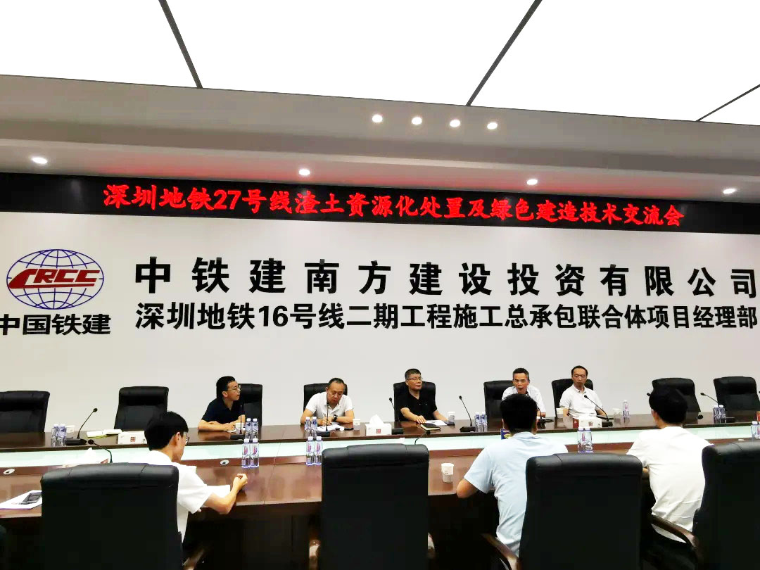 5月8日,中國鐵建南方投資黨委副書記、紀(jì)委書記姜立國、27號線指揮部總工程師董志;廣東省建科院創(chuàng)新研究院劉遠(yuǎn)亮博士、深圳市中科綠建環(huán)??偨?jīng)理呂高楊及27號線各工程局有關(guān)管理人員參加了渣土資源化處置及綠色建造技術(shù)交流。